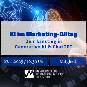 Der Marketing Club TechnologieRegion Karlsruhe e.V. wurde 1964 gegründet und gilt seit jeher als das Kompetenzzentrum für Marketing. Rund 250 aktive Mitglieder, kreative Köpfe aus allen Branchen, Managementlevels und den unterschiedlichsten Sparten des Marketing, sind Mitglieder im Club.