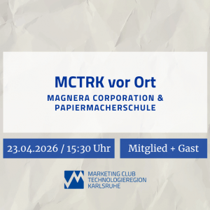 Der Marketing Club TechnologieRegion Karlsruhe e.V. wurde 1964 gegründet und gilt seit jeher als das Kompetenzzentrum für Marketing. Rund 250 aktive Mitglieder, kreative Köpfe aus allen Branchen, Managementlevels und den unterschiedlichsten Sparten des Marketing, sind Mitglieder im Club.